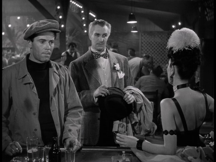 (I couldn't find a screenshot so here's a publicity still.) Gee if my parents knew I'd grow up to watch golden age Hollywood they wouldn't have bothered making me wait til I was 14 to watch old James Bonds in an effort to instill gender equity in me. I don't really get why the writers made such a point of establishing the protagonist's Hammeresque levels of mac daddy PI-ness only to have him act like a pussywhipped schmuck throughout the second half (the ending maybe gives it some context), but it does make for some great lines early on: